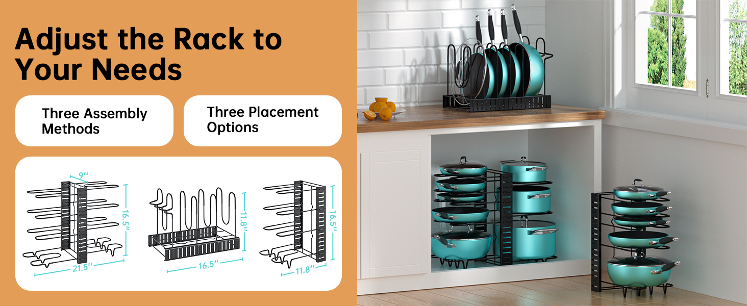 8+ Expandable Pan and Pot Lid Organizer Rack for Cabinet,