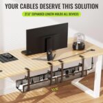 2 Pack Cable Management Under Desk Tray, 31.4″ No Drill Under Desk Wire Management with Upgraded Clamp