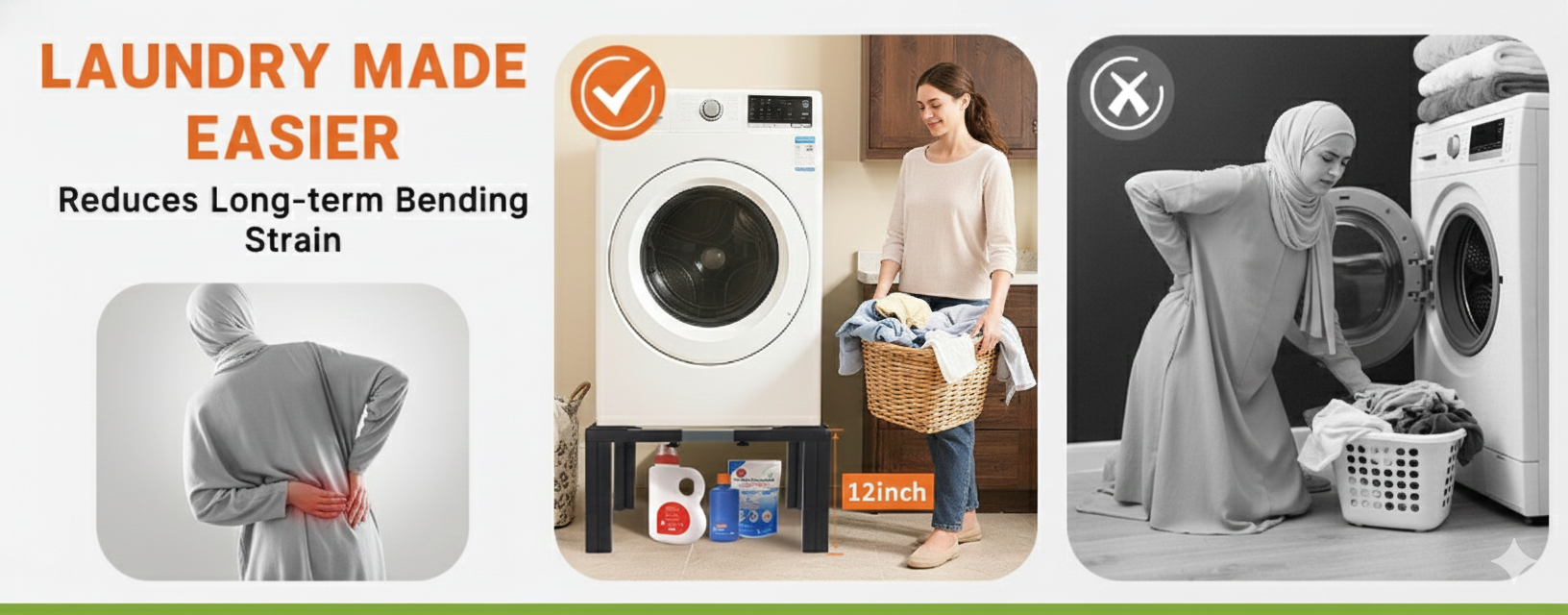 Washing Machine Stand – Adjustable Heavy-Duty Metal Trolley with Wheels, Anti-Vibration Rubber Grips, Load Capacity