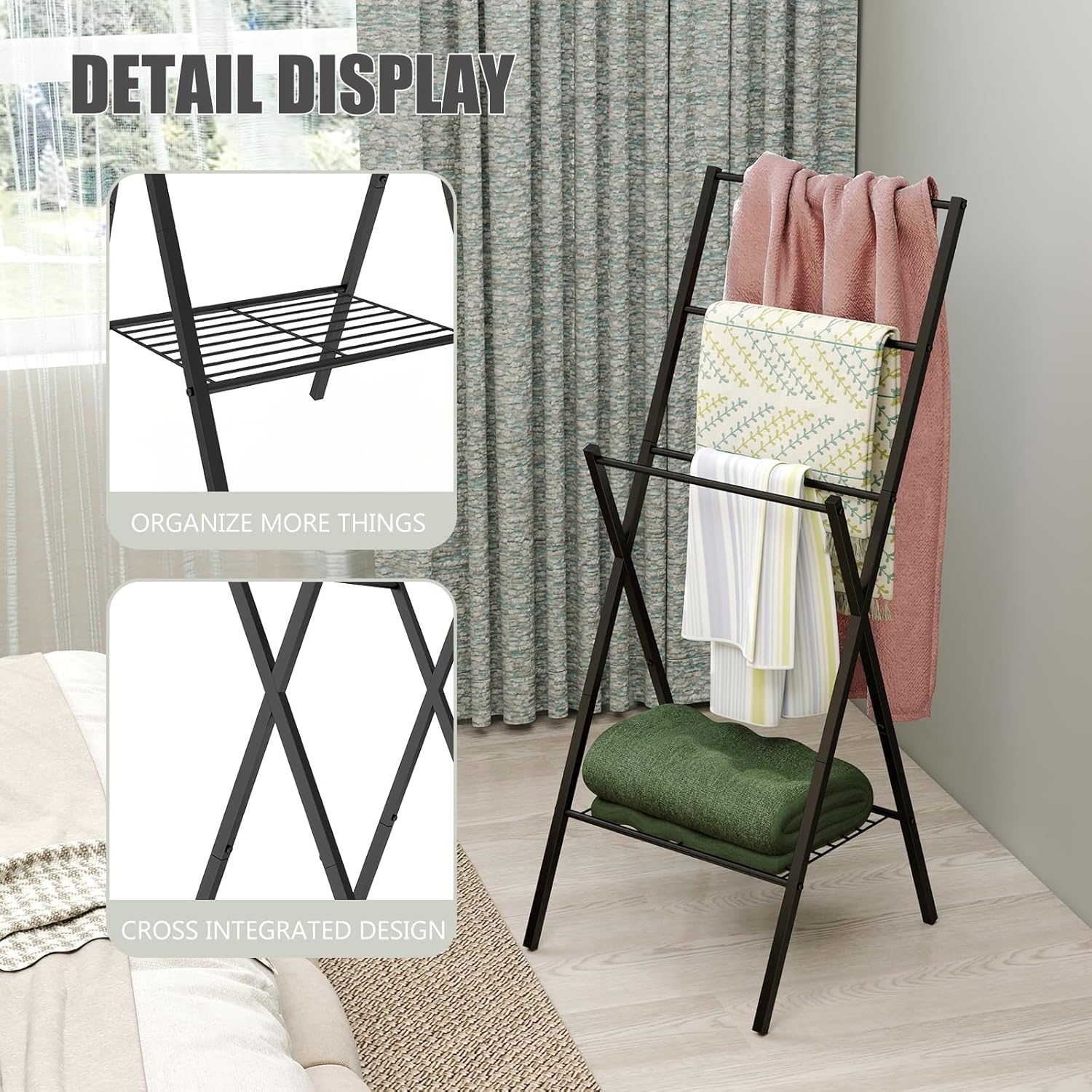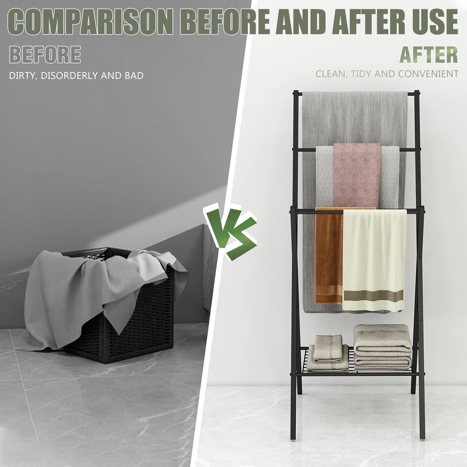 The bottom of the towel rack has a layer of storage rack, which can increase storage space, store more items, and save spaceTowel rack suitable for multiple scenarios,living room, bedroom, bathroom