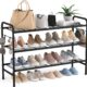 3 Tier Shoe Rack 24″ Wide Metal Shoe Organizer Long Shoe Storage with 4 Side Hooks Sturdy Shoes Shelf