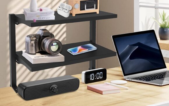 2 Pack Cable Management Under Desk Tray, 31.4″ No Drill Under Desk Wire Management with Upgraded Clamp